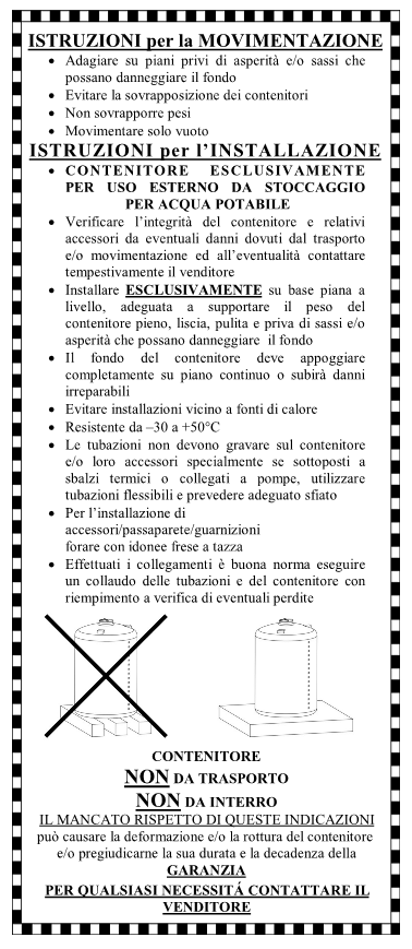 Si possono adattare a qualsiasi serbatoio per recupero acqua piovana sia interrato che fuori terra in polietilene cemento o altri materiali