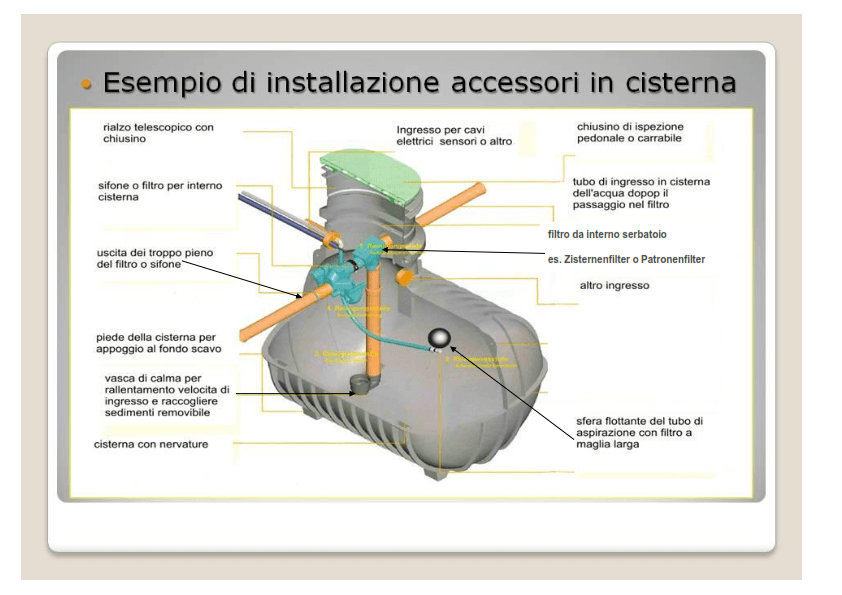 Si possono adattare a qualsiasi serbatoio per recupero acqua piovana sia interrato che fuori terra in polietilene cemento o altri materiali